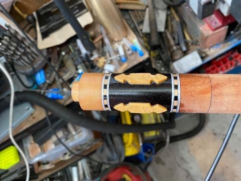 The shaft is my own custom design, 13.8mm straight taper carbon fibre.