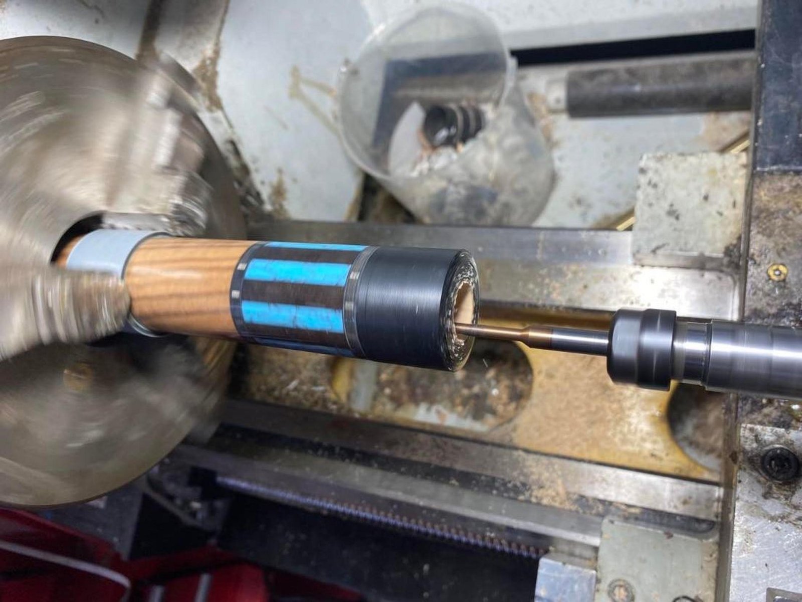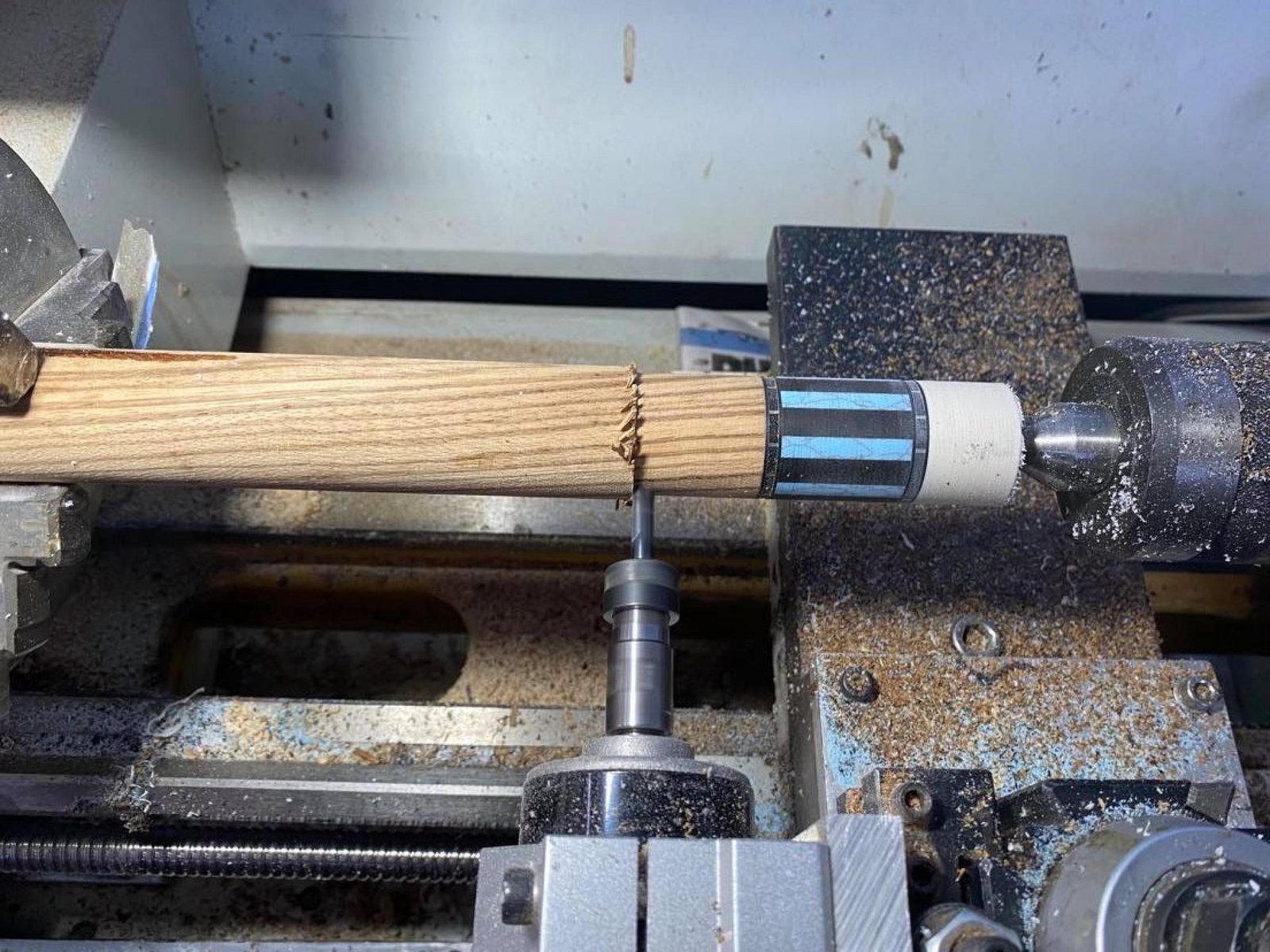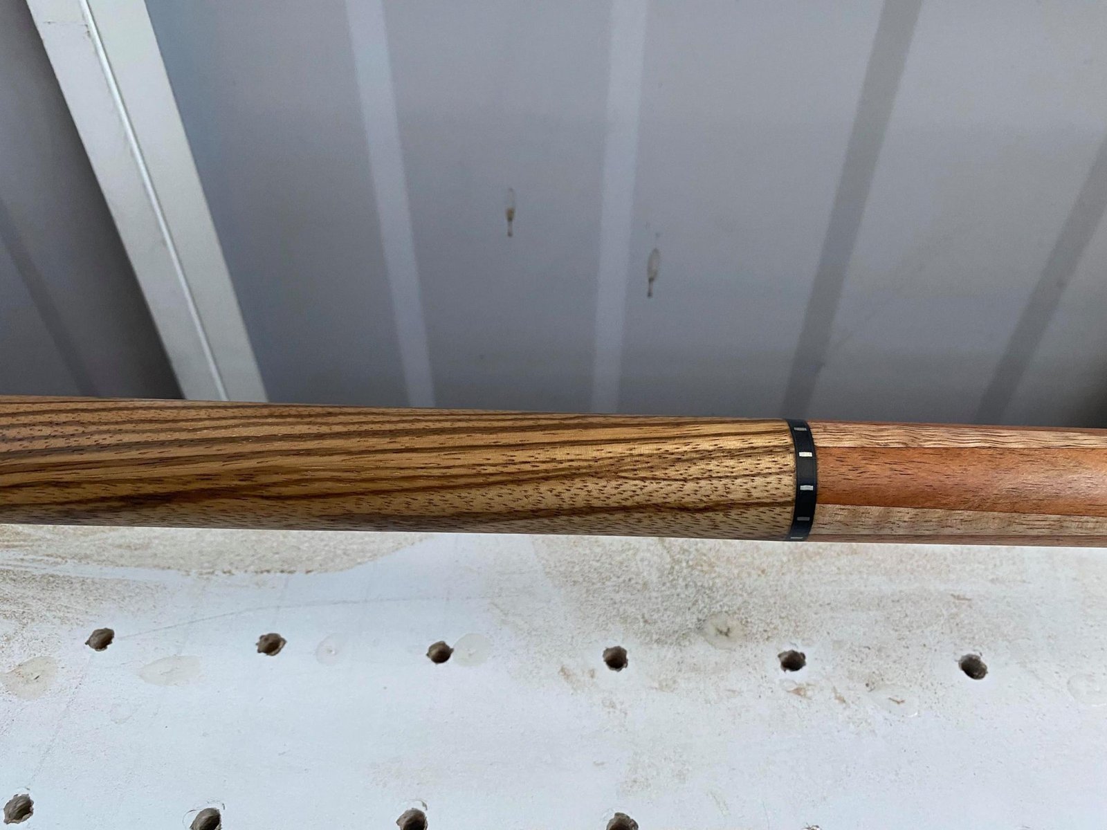 I started this one with the forearm first! Tasmanian Blackwood forearm with Victorian Mountain Ash inlay points. Laminated rock maple core inside Zebrano handle. Reconstituted stone inlays in the butt sleeve.