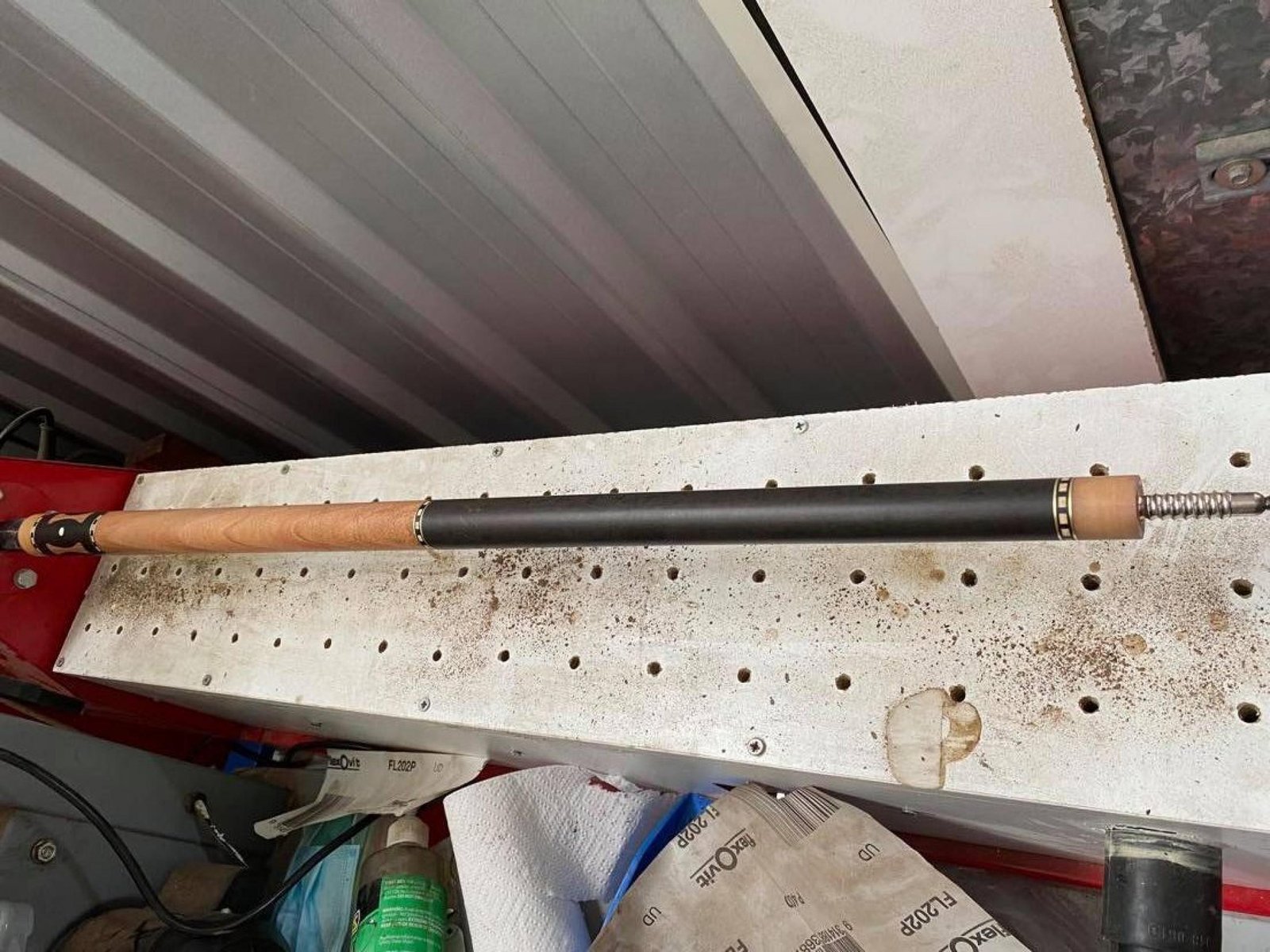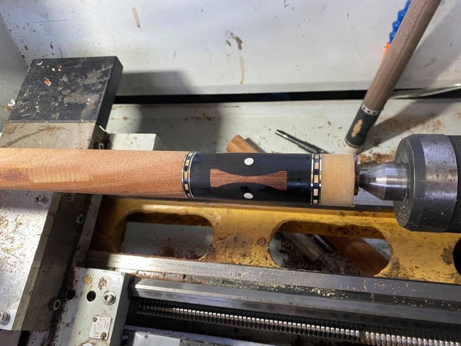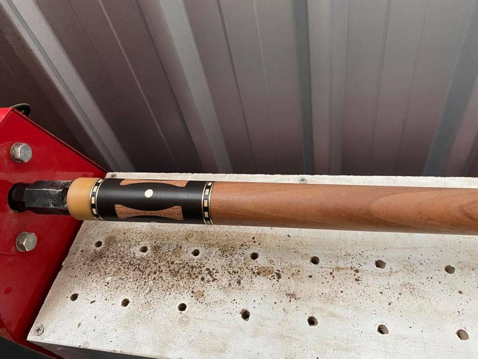 The Ebony butt sleeve has Tasmanian Blackwood and White Tomahawk inlays.
