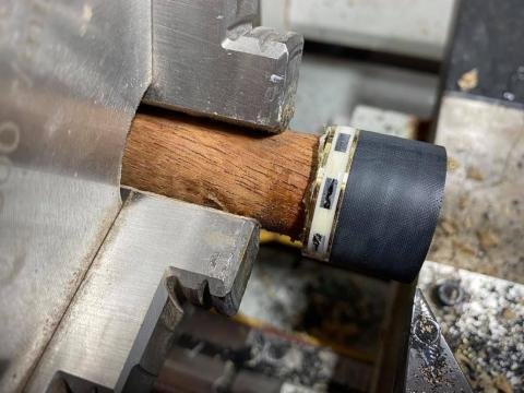The ring is maple/ebony sandwiched between white fibre and brass.