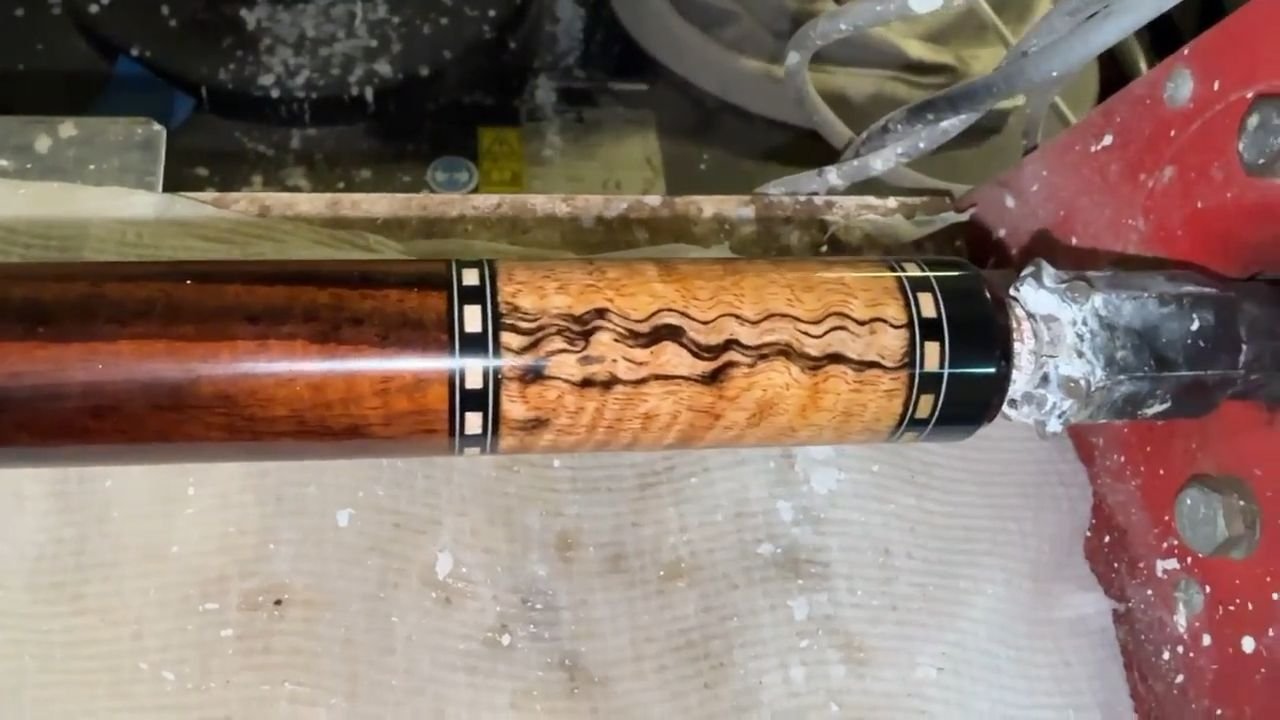 This cue is no wrap, with Spalted Tamarind forearm and butt sleeve with Indian Rosewood handle.