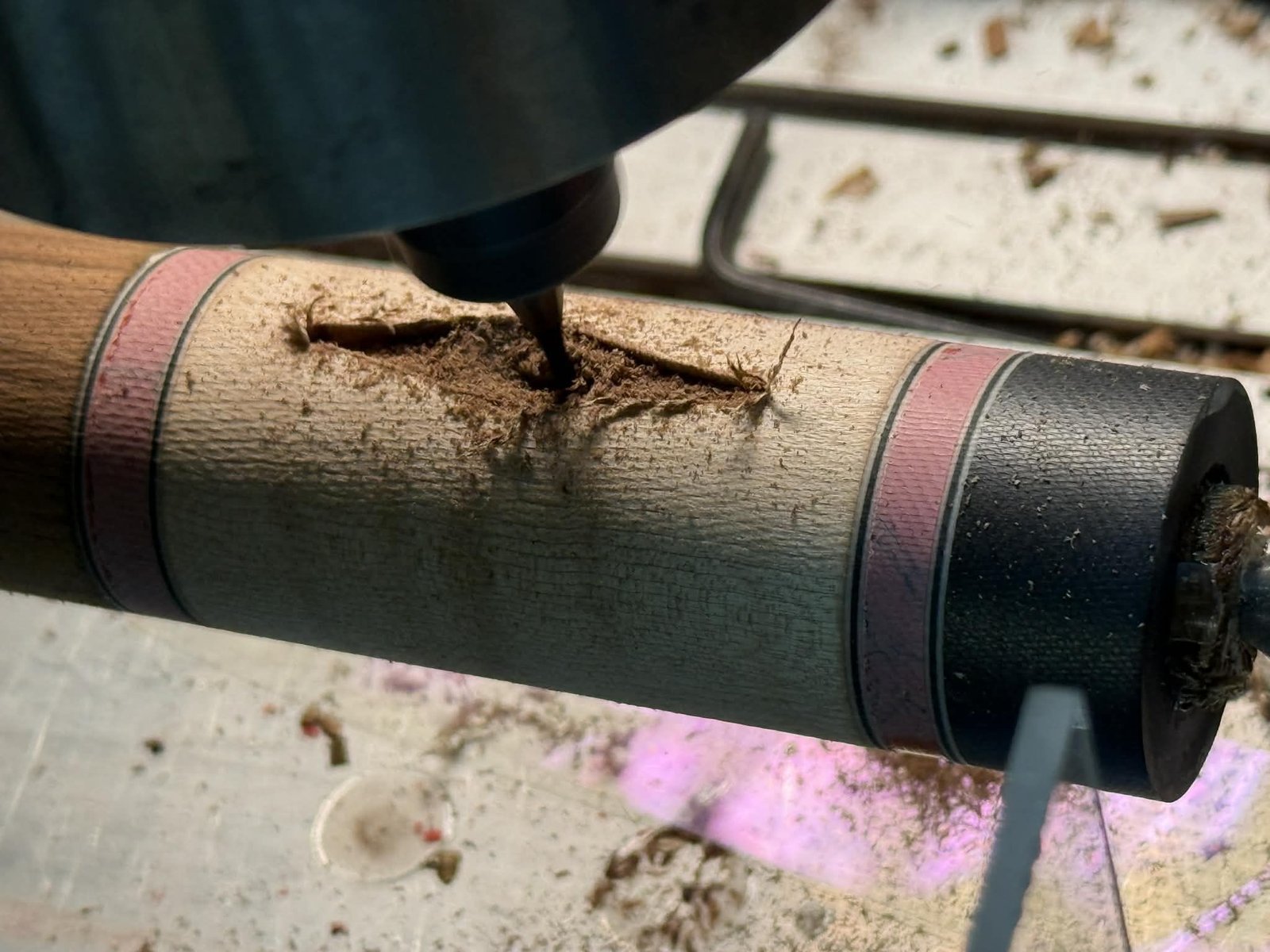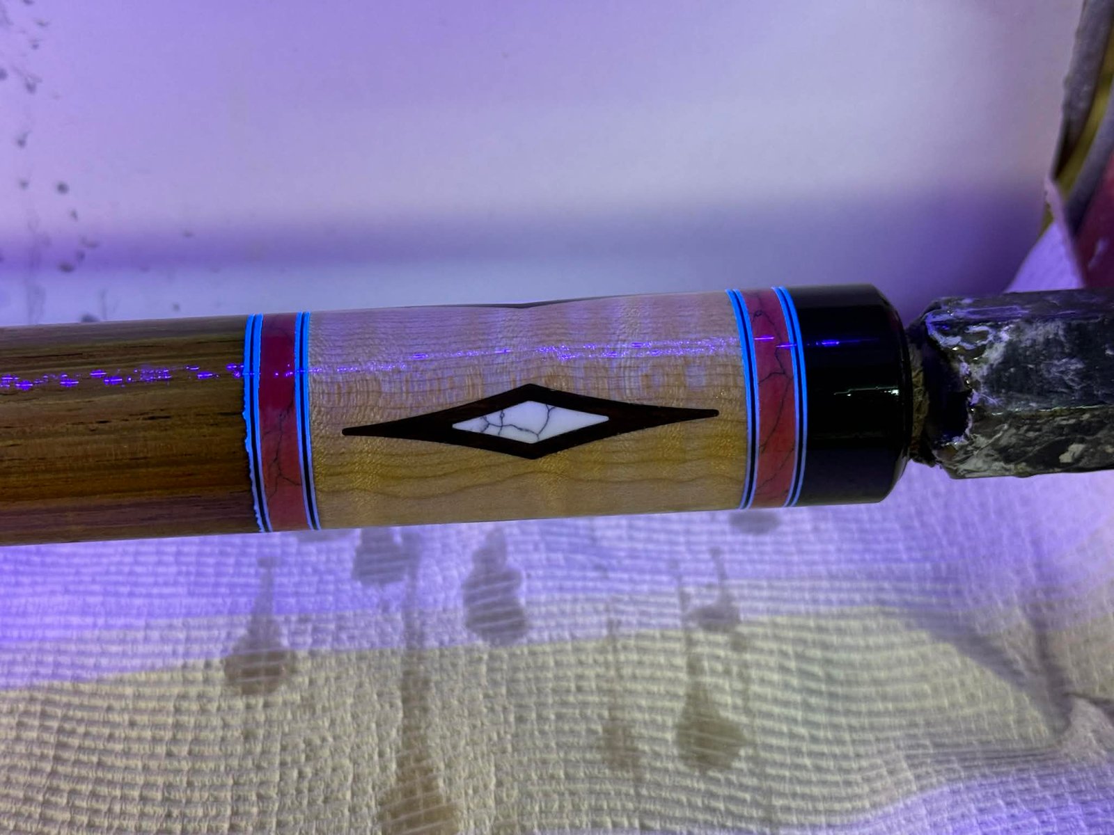 Butt sleeve is Curly Maple with Jarrah Burl inlays.