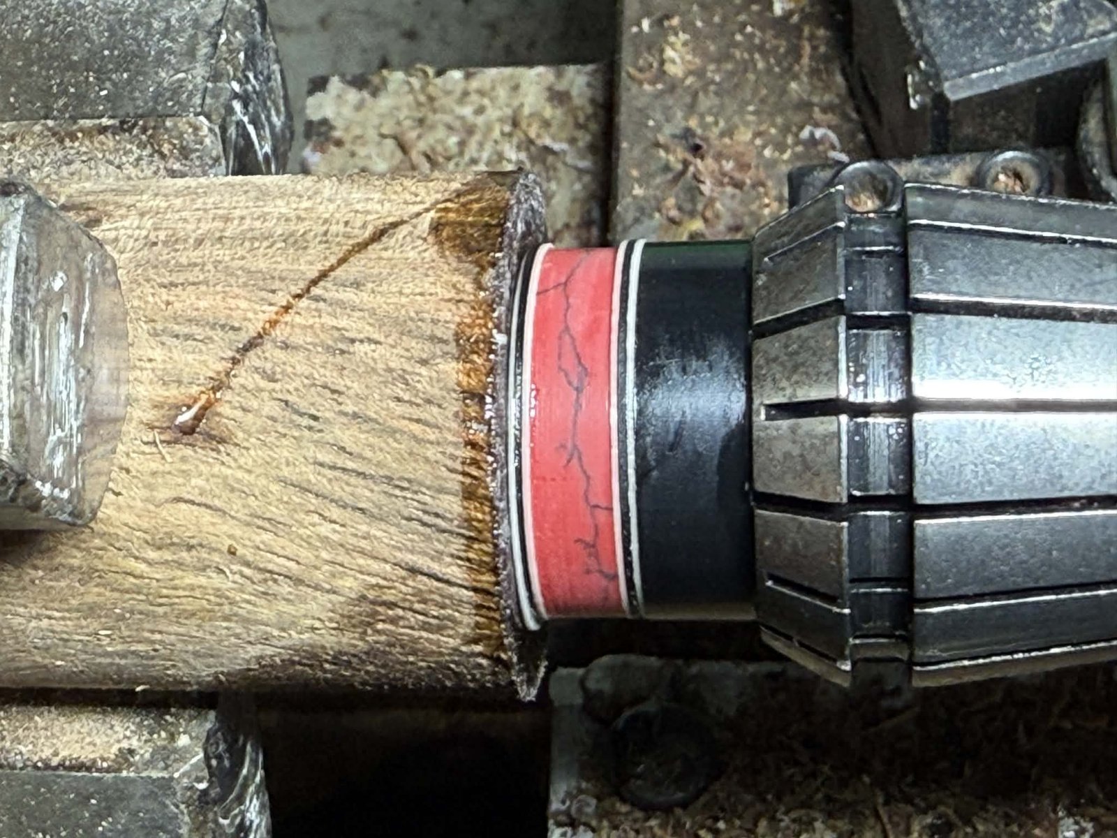 Custom reconstituted stone rings fitted and Tasmanian Blackwood handle.