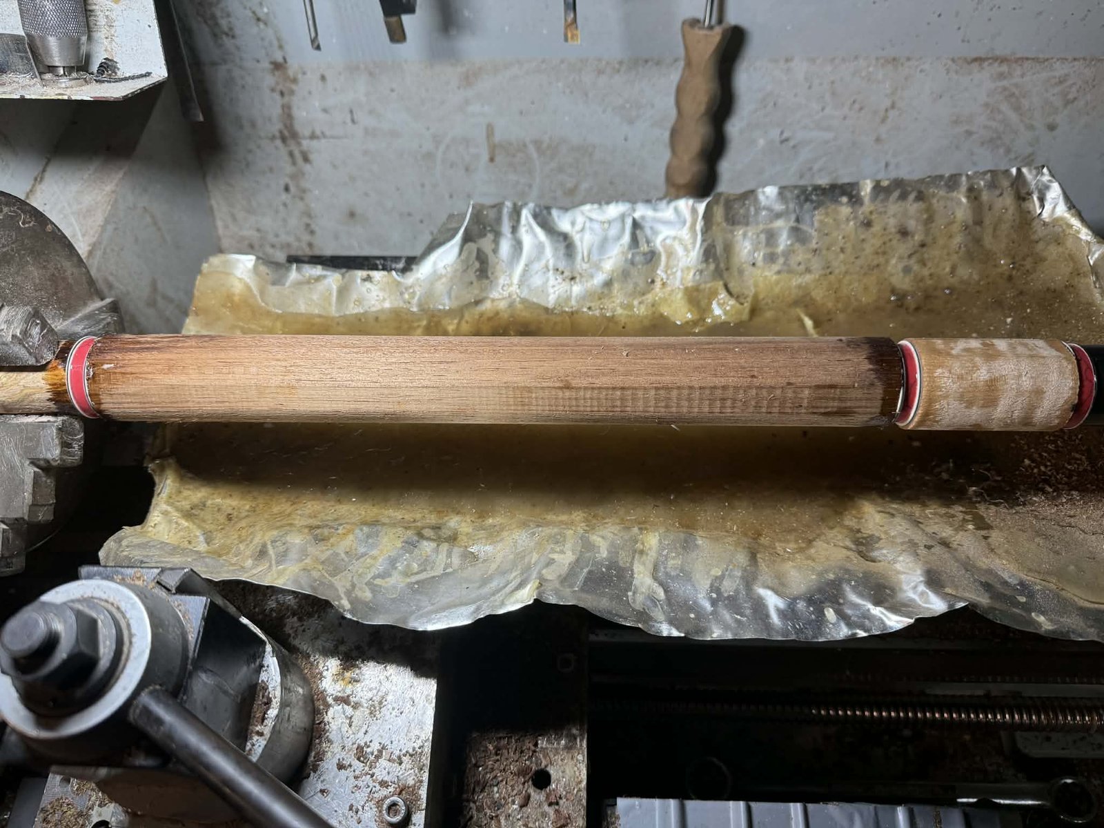 Custom reconstituted stone rings fitted and Tasmanian Blackwood handle.